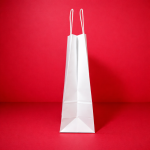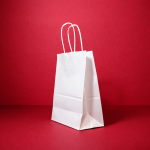 Bolsa de papel blanca con asa rizada. Medidas: 21x27 cm. Pack de 50 unidades. Precios por volumen disponibles. IVA no incluido.