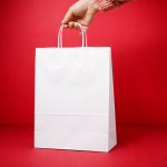 Bolsa de papel blanca con asa rizada. Medidas: 25x33 cm. Pack de 50 unidades. Precios por volumen disponibles. IVA no incluido.